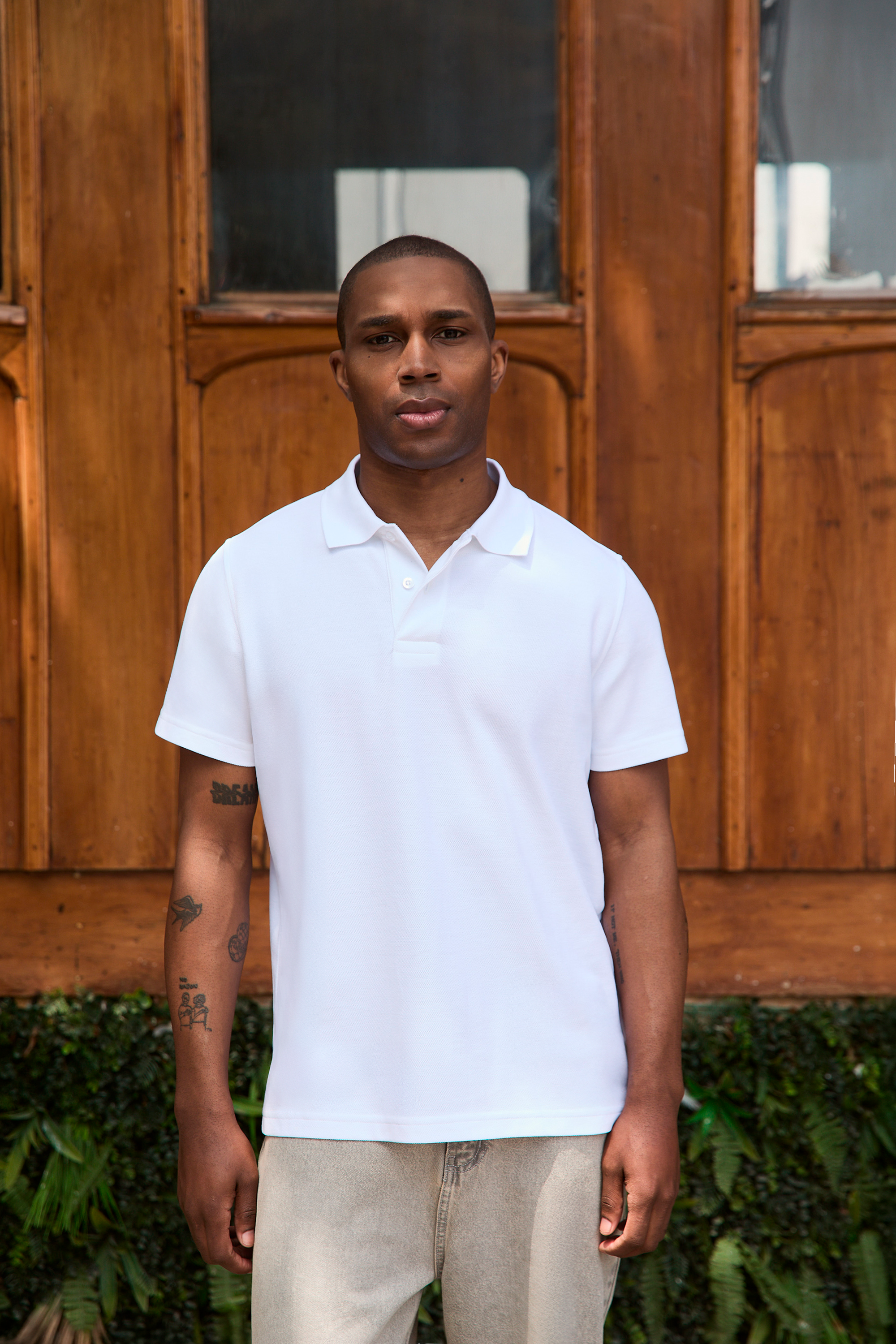 POLO CAMISERO DE PIQUÉ DE ALGODÓN PIMA BLANCO