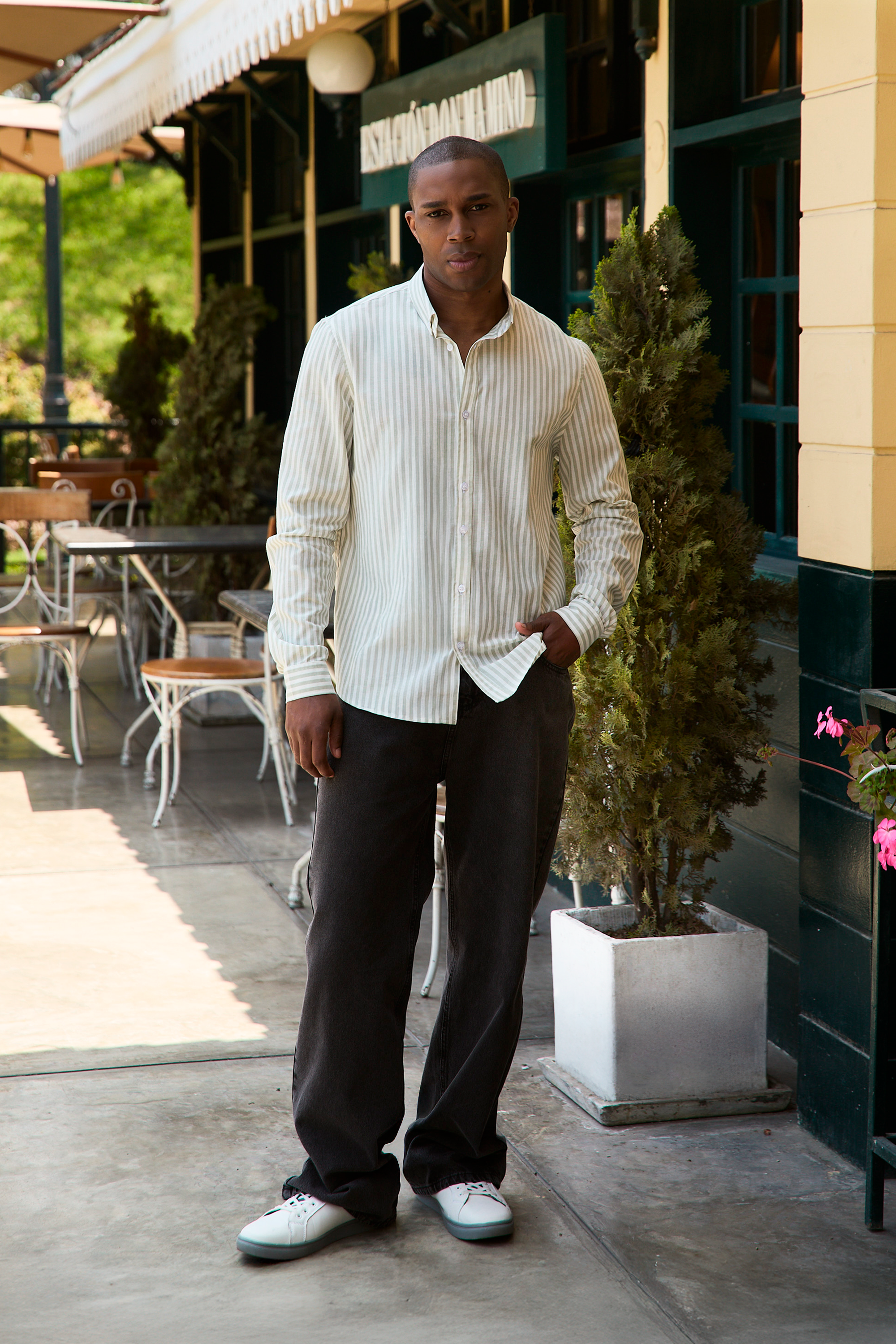 CAMISA DE MANGA LARGA A RAYAS VERDE Y BLANCO FERNANDO